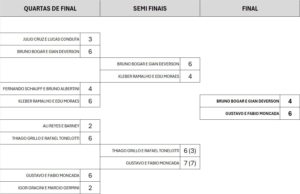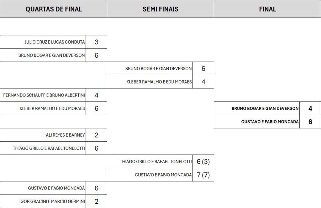 Inscrição + Camiseta + Bola + Grip + Churrasco + Pulseira de Chopp com Desconto ($6,00) + Troféu para a dupla Campeã.
